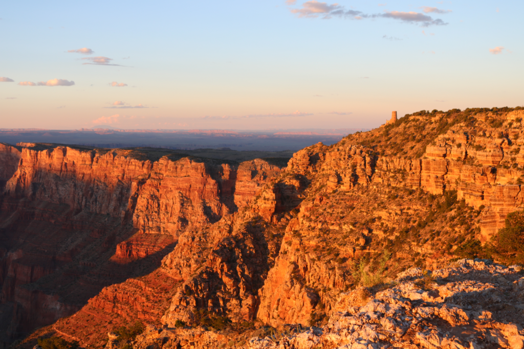 グランドキャニオンは世界遺産にも登録されており、自然が作り出した巨大な渓谷は、言わずもがな、アメリカ西海岸必見の観光スポットかと思います。夕日に照らされたグランドキャニオンはこれまた神秘的な景色ですので、グランドキャニオン訪問時には、是非夕方まで滞在することをお勧めします。